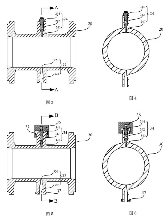 中,也可以是在經(jīng)過燒結(jié)工藝后的陶瓷測(cè)量管20上再進(jìn)行例如開鑿等后續(xù)加工工藝而形成電極插孔22。實(shí)際上,只要能制作出具有電極插孔的陶瓷管,其具體制作工藝并不限于上述的描述,仍可以有其他的變化,故在此不再贅述。
