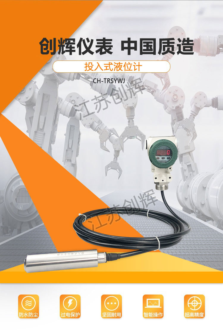 CH-TRS投入式液位變送器是基于所測液體靜壓與該液體高度成正比的原理,采用擴散硅或陶瓷敏感元件的壓阻效應,將靜壓轉成電信號。經過溫度補償和線性校正,轉換成4-20mADC標準電流信號輸出。 投入式液位變送器的傳感器部分可直接投入到液體中,變送器部分可用法蘭或支架固定,安裝使用極為方便。買投入式液位變送器***江蘇創輝,**從事投入式液位變送器儀表的開發和應用.產品安全可靠,耐高溫高壓,技術**. 歡迎來電咨詢投入式液位變送器價格!